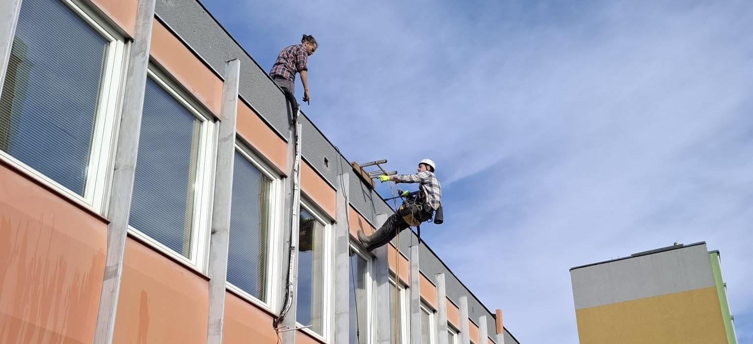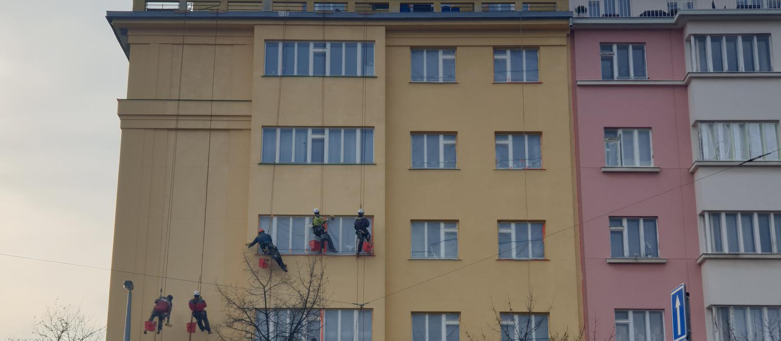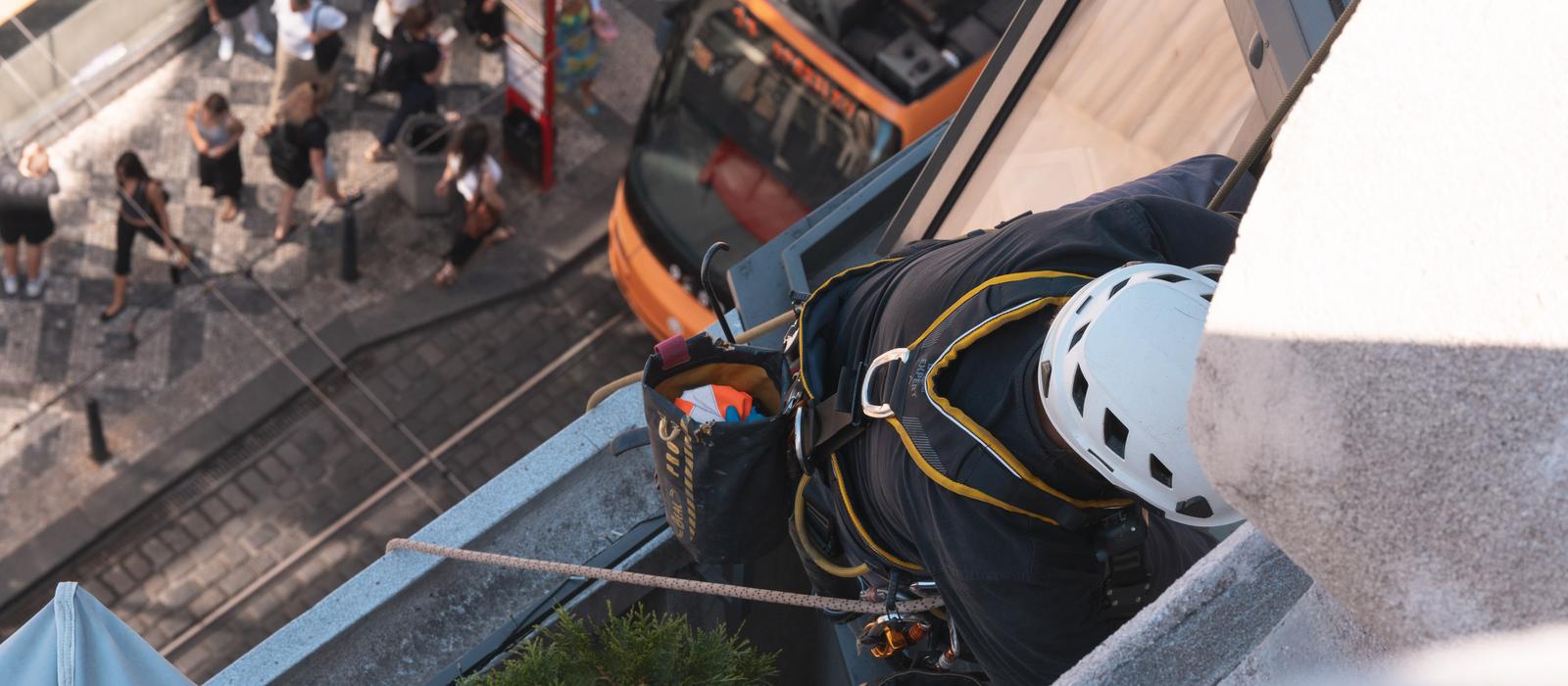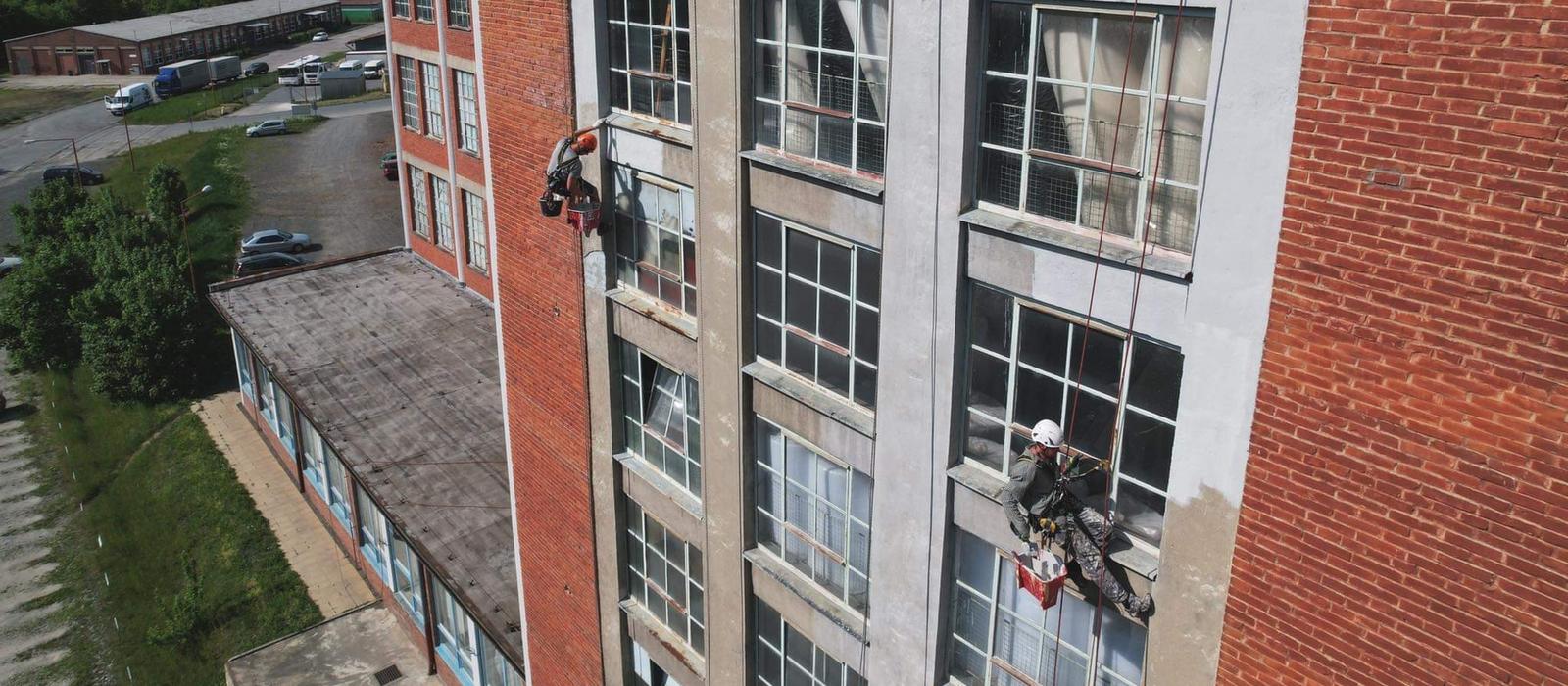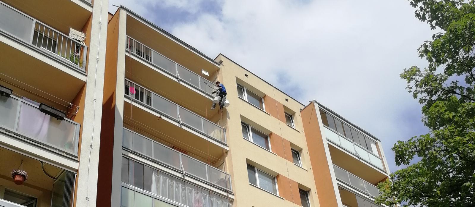 Provádíme certifikované práce ve výškách a nad otevřenou hloubkou za pomoci profesionální horolezecké techniky. Práce za pomoci horolezecké techniky je podstatně méně nákladná a efektivnější než práce z lešení nebo vysokozdvižných plošin. Veškerá doprava materiálu i přístup probíhá z vnějšku budov za pomoci speciálního lanového vybavení.