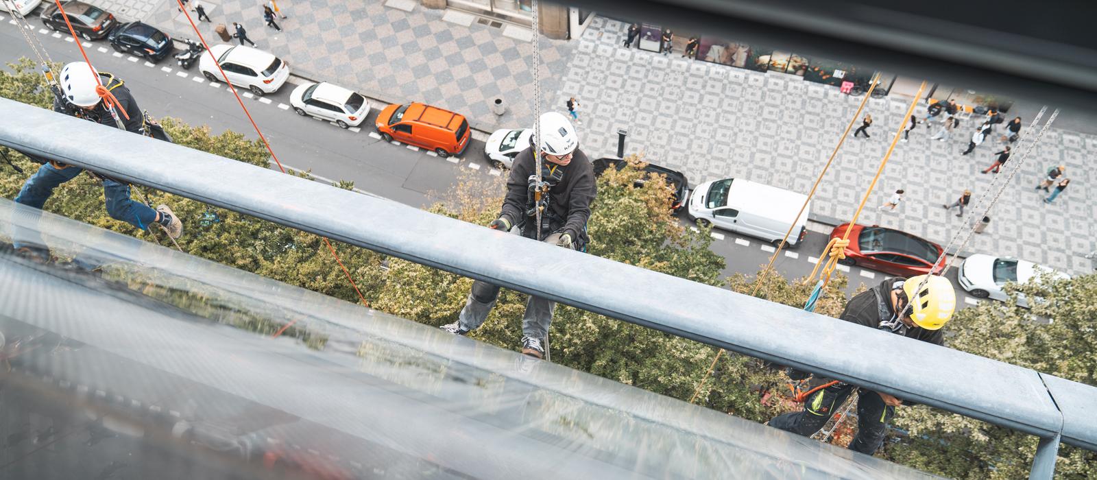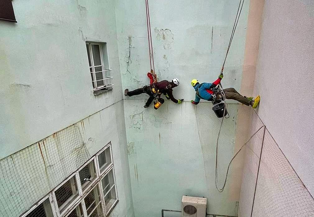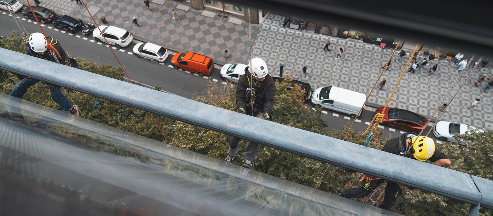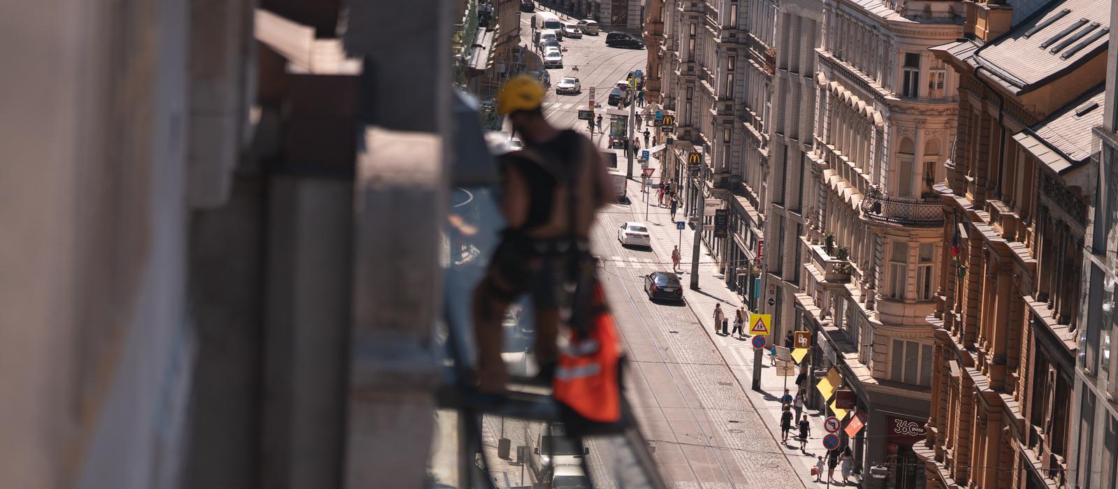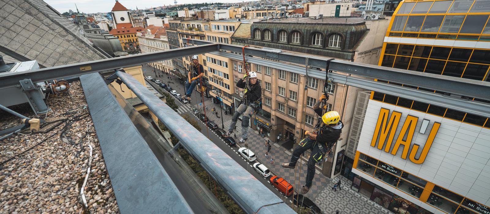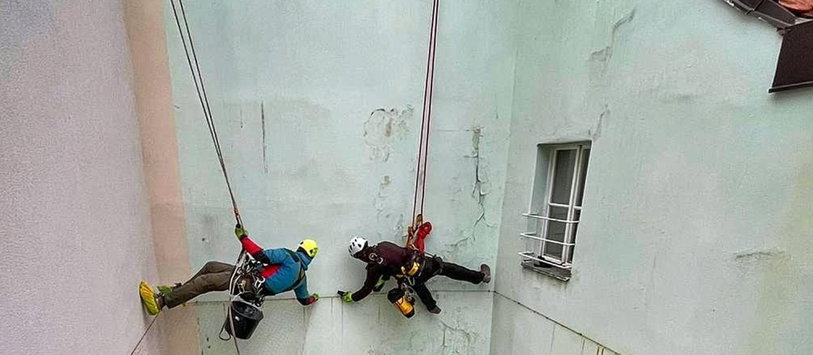 Provádíme certifikované práce ve výškách a nad otevřenou hloubkou za pomoci profesionální horolezecké techniky. Práce za pomoci horolezecké techniky je podstatně méně nákladná a efektivnější než práce z lešení nebo vysokozdvižných plošin. Veškerá doprava materiálu i přístup probíhá z vnějšku budov za pomoci speciálního lanového vybavení.