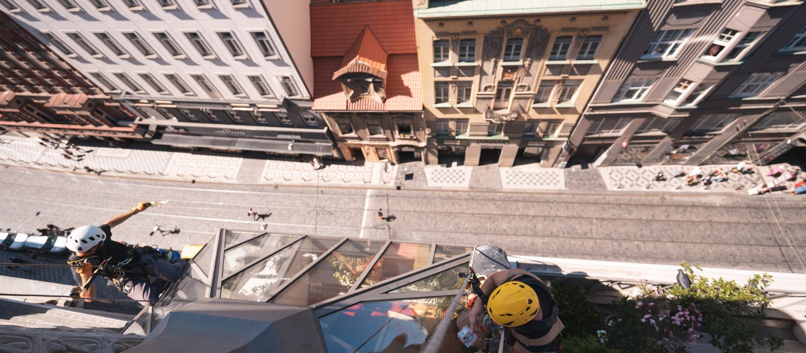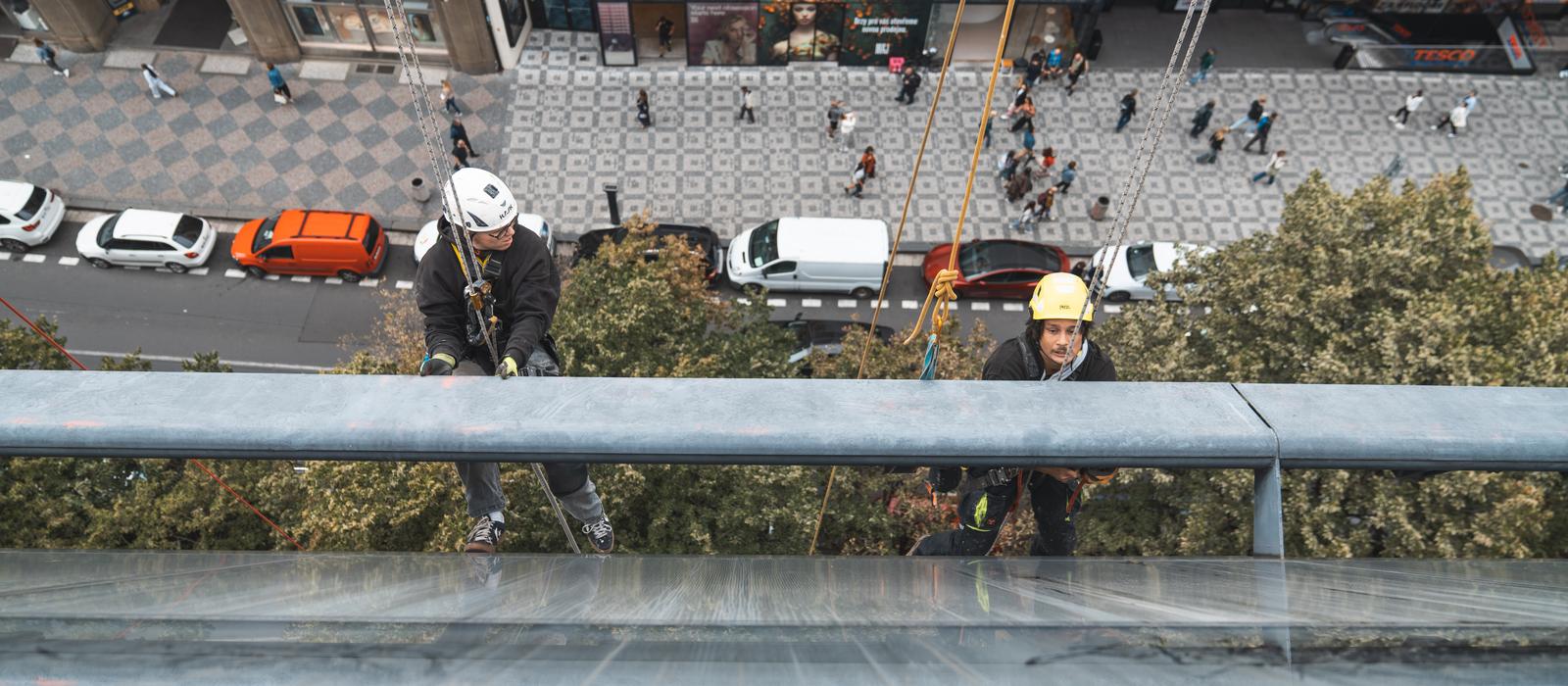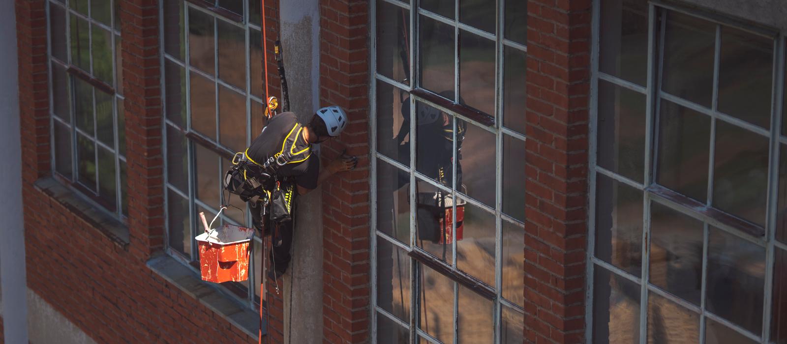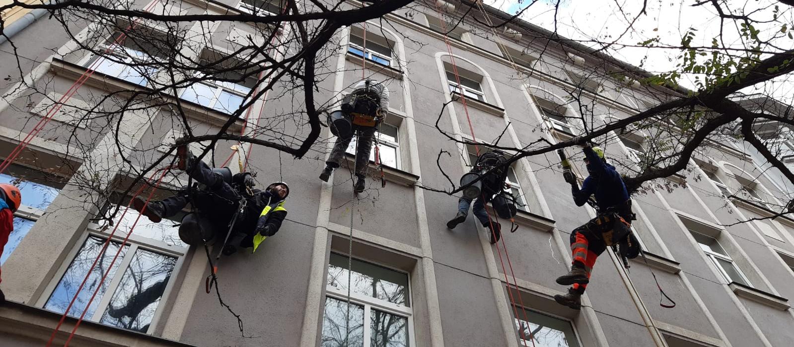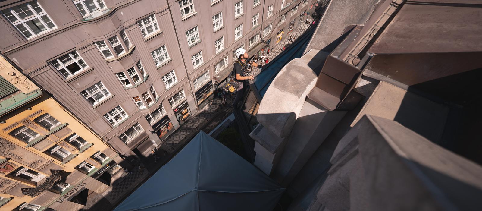 Provádíme certifikované práce ve výškách a nad otevřenou hloubkou za pomoci profesionální horolezecké techniky. Práce za pomoci horolezecké techniky je podstatně méně nákladná a efektivnější než práce z lešení nebo vysokozdvižných plošin. Veškerá doprava materiálu i přístup probíhá z vnějšku budov za pomoci speciálního lanového vybavení.