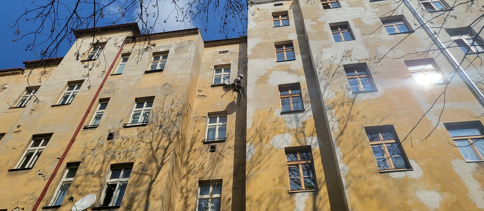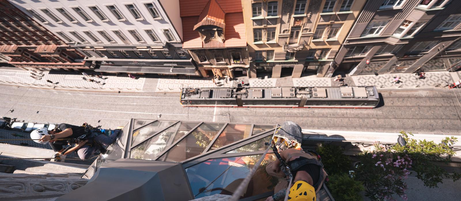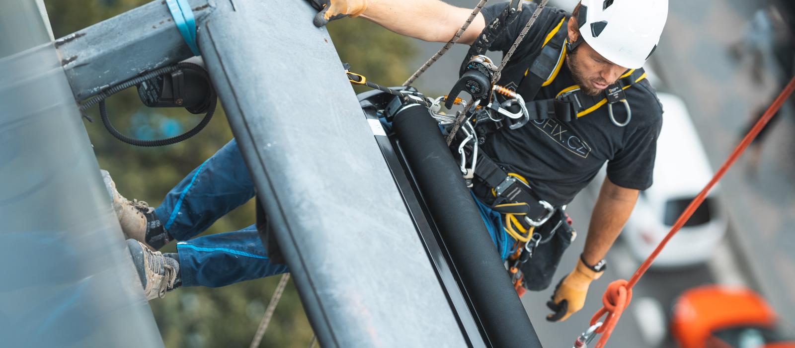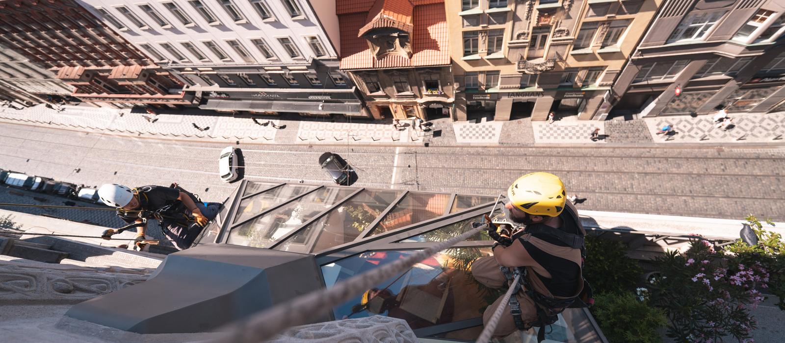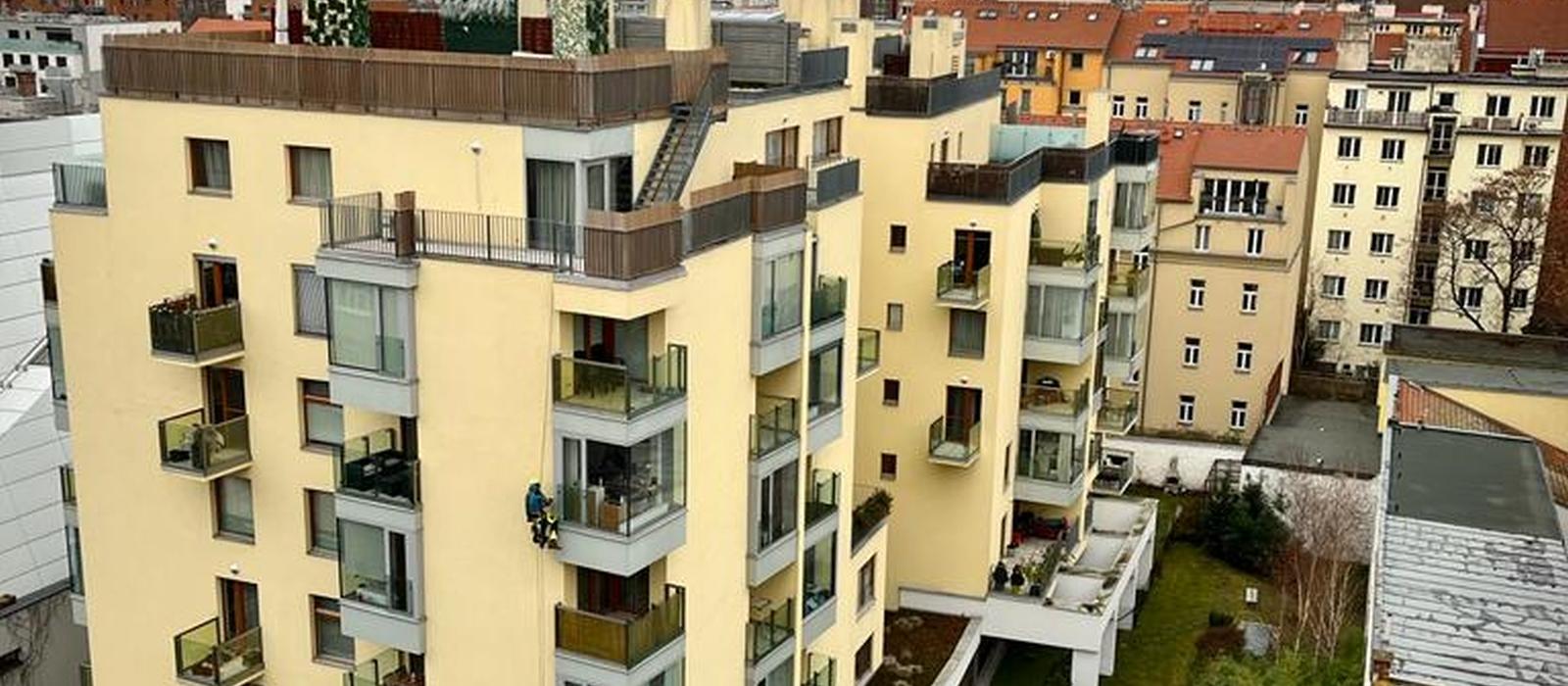 Provádíme certifikované práce ve výškách a nad otevřenou hloubkou za pomoci profesionální horolezecké techniky. Práce za pomoci horolezecké techniky je podstatně méně nákladná a efektivnější než práce z lešení nebo vysokozdvižných plošin. Veškerá doprava materiálu i přístup probíhá z vnějšku budov za pomoci speciálního lanového vybavení.
