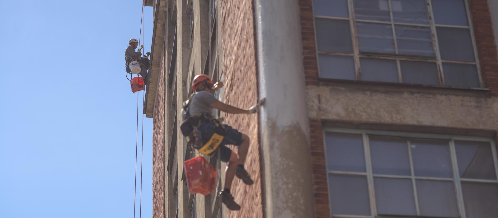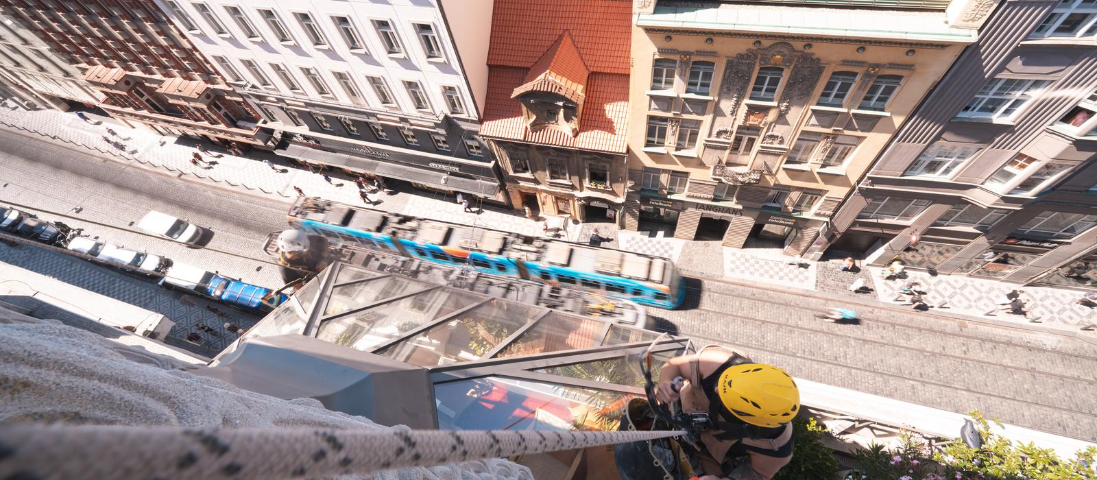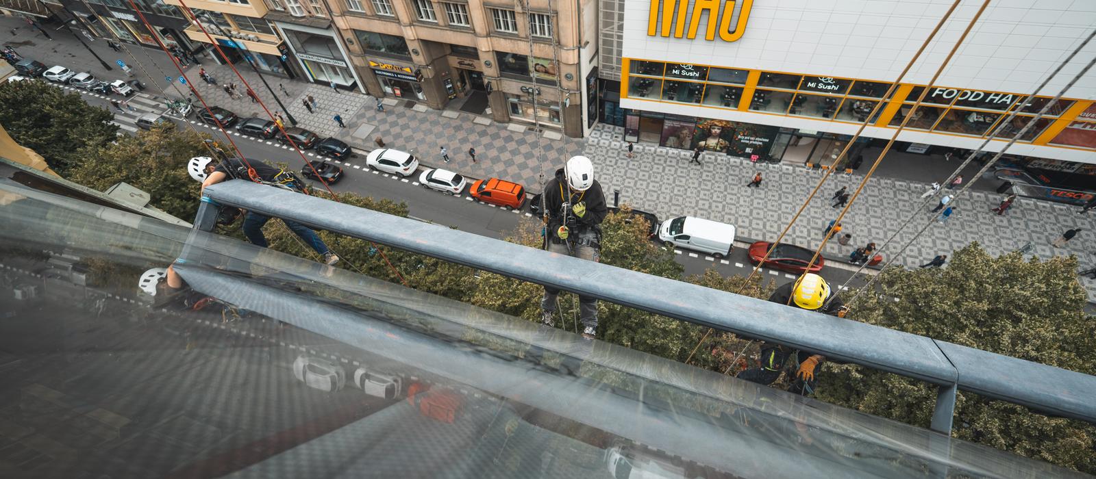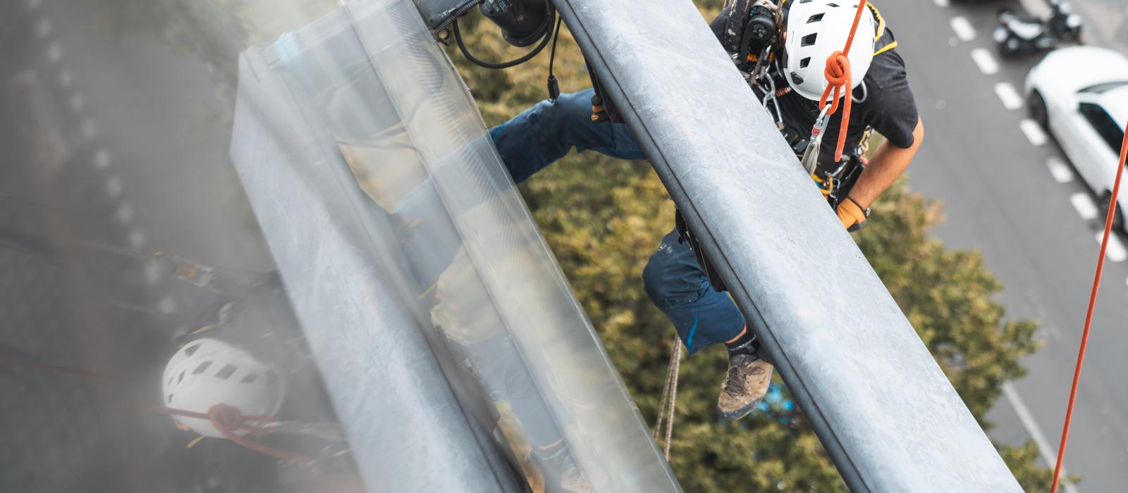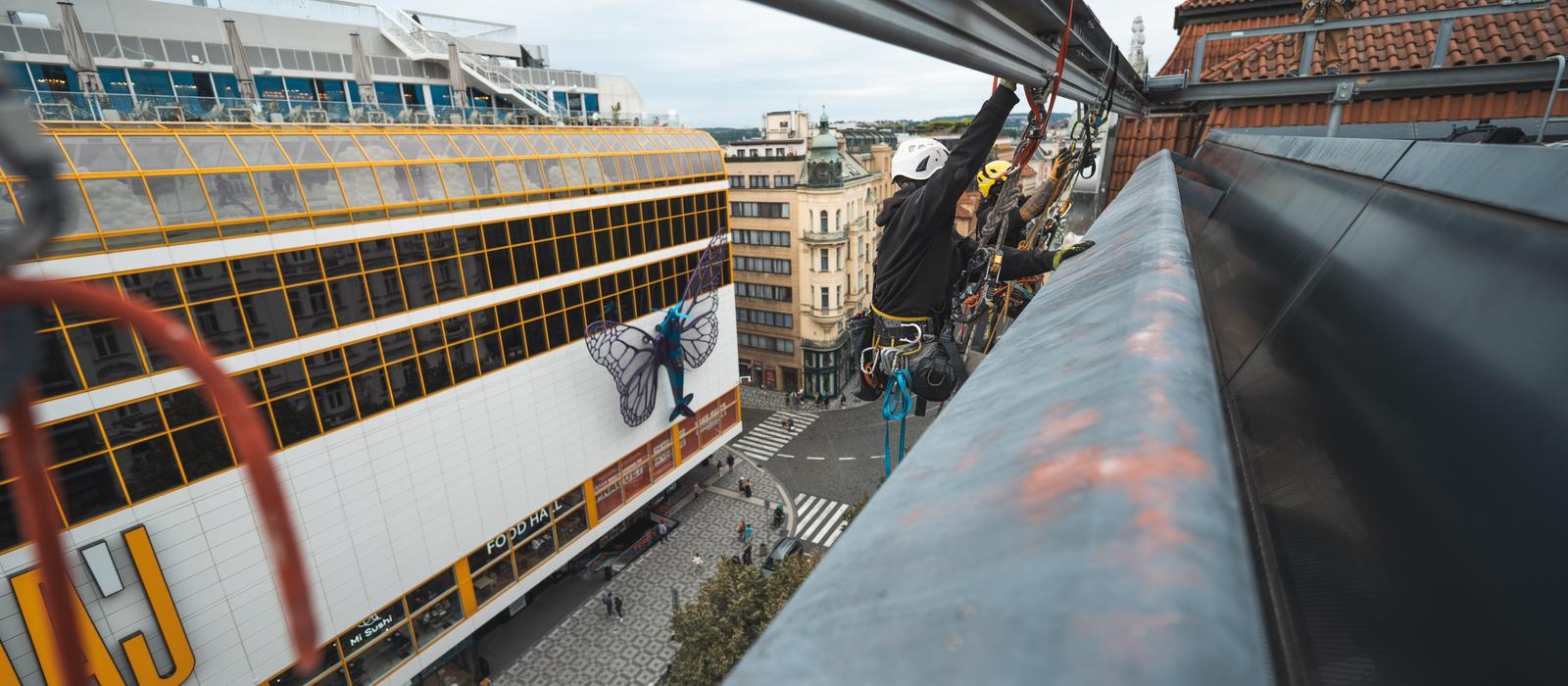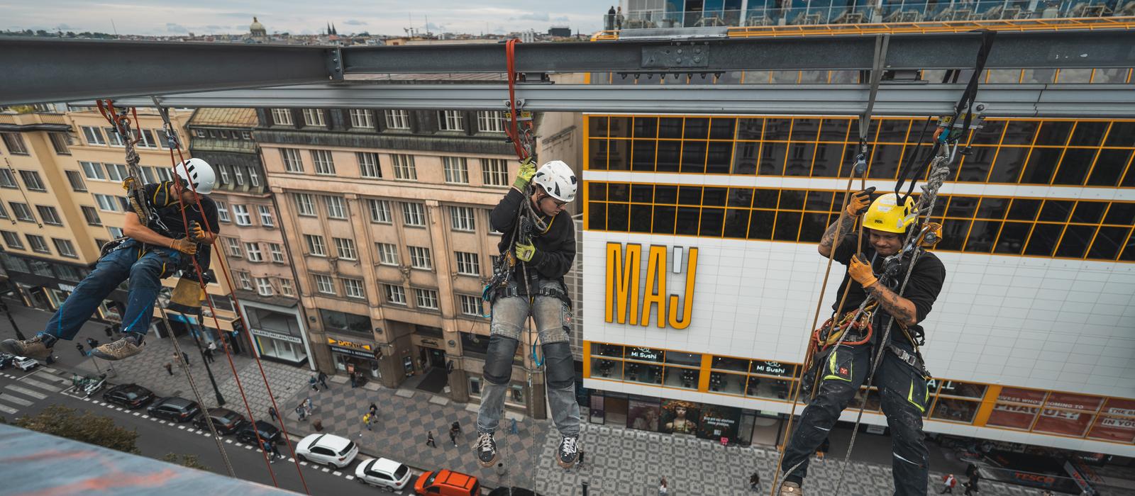 Provádíme certifikované práce ve výškách a nad otevřenou hloubkou za pomoci profesionální horolezecké techniky. Práce za pomoci horolezecké techniky je podstatně méně nákladná a efektivnější než práce z lešení nebo vysokozdvižných plošin. Veškerá doprava materiálu i přístup probíhá z vnějšku budov za pomoci speciálního lanového vybavení.