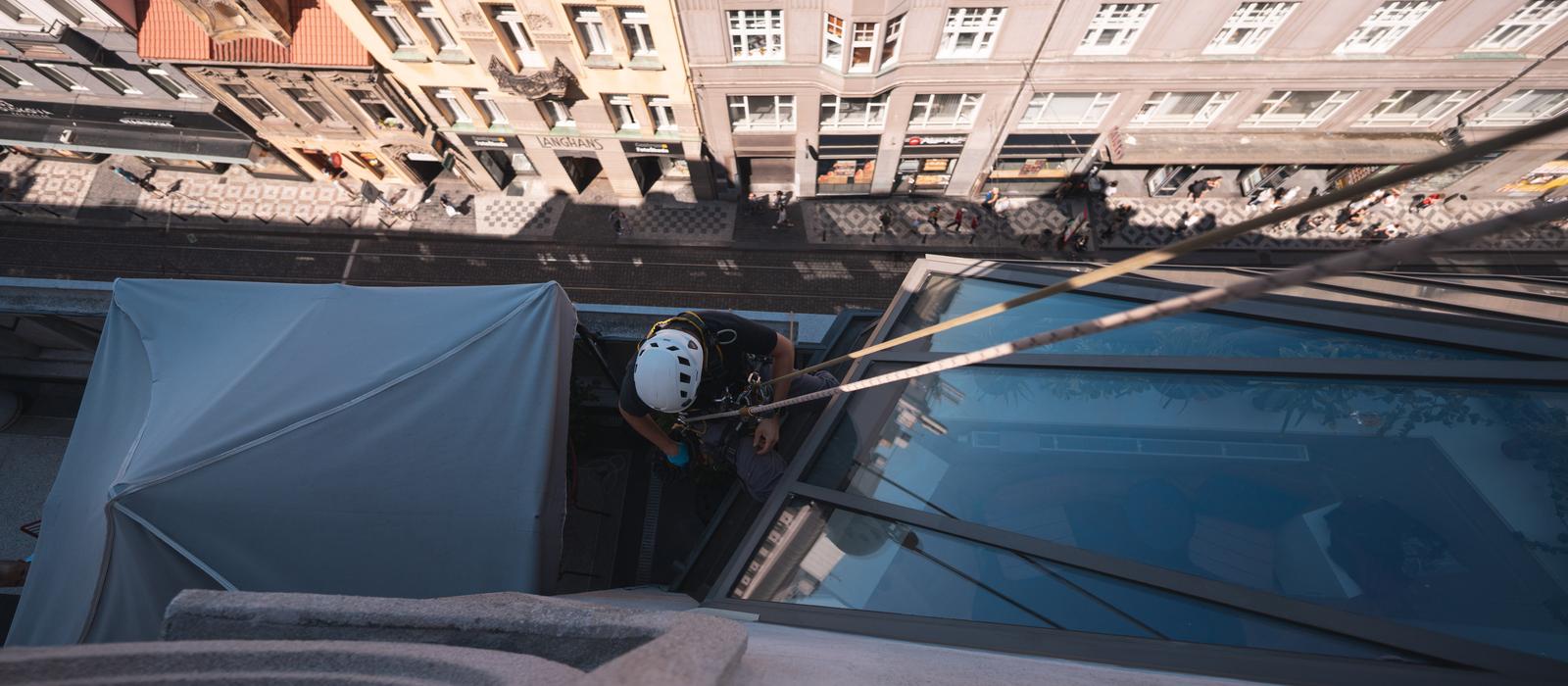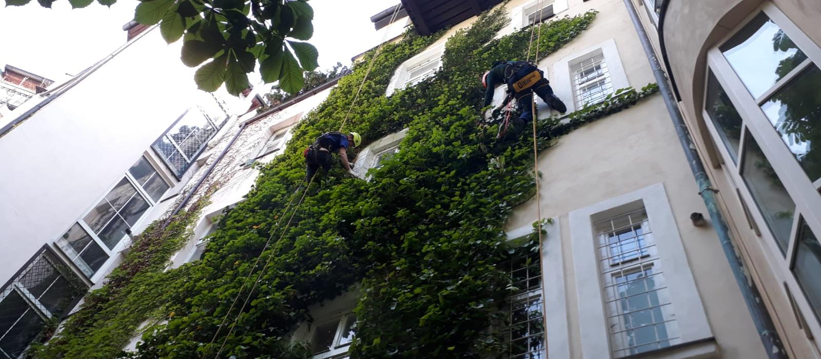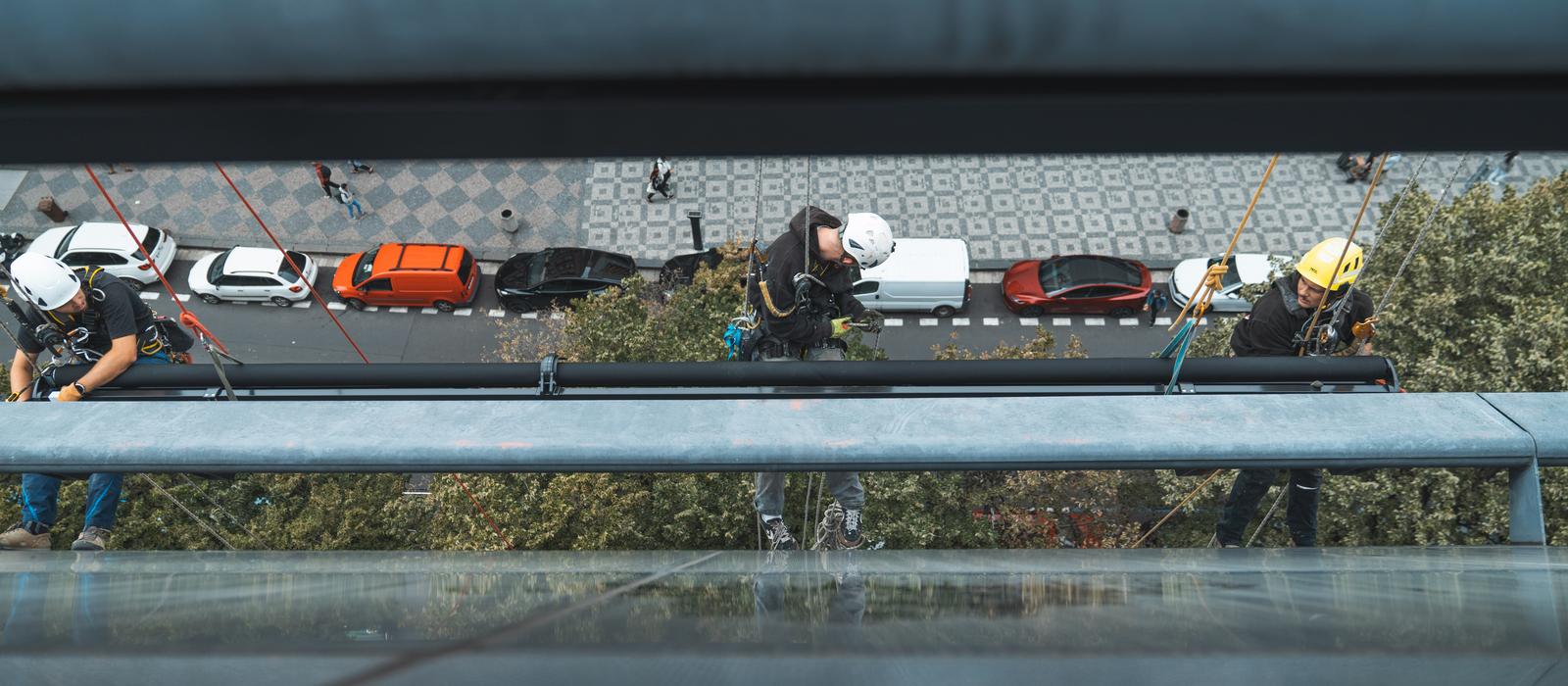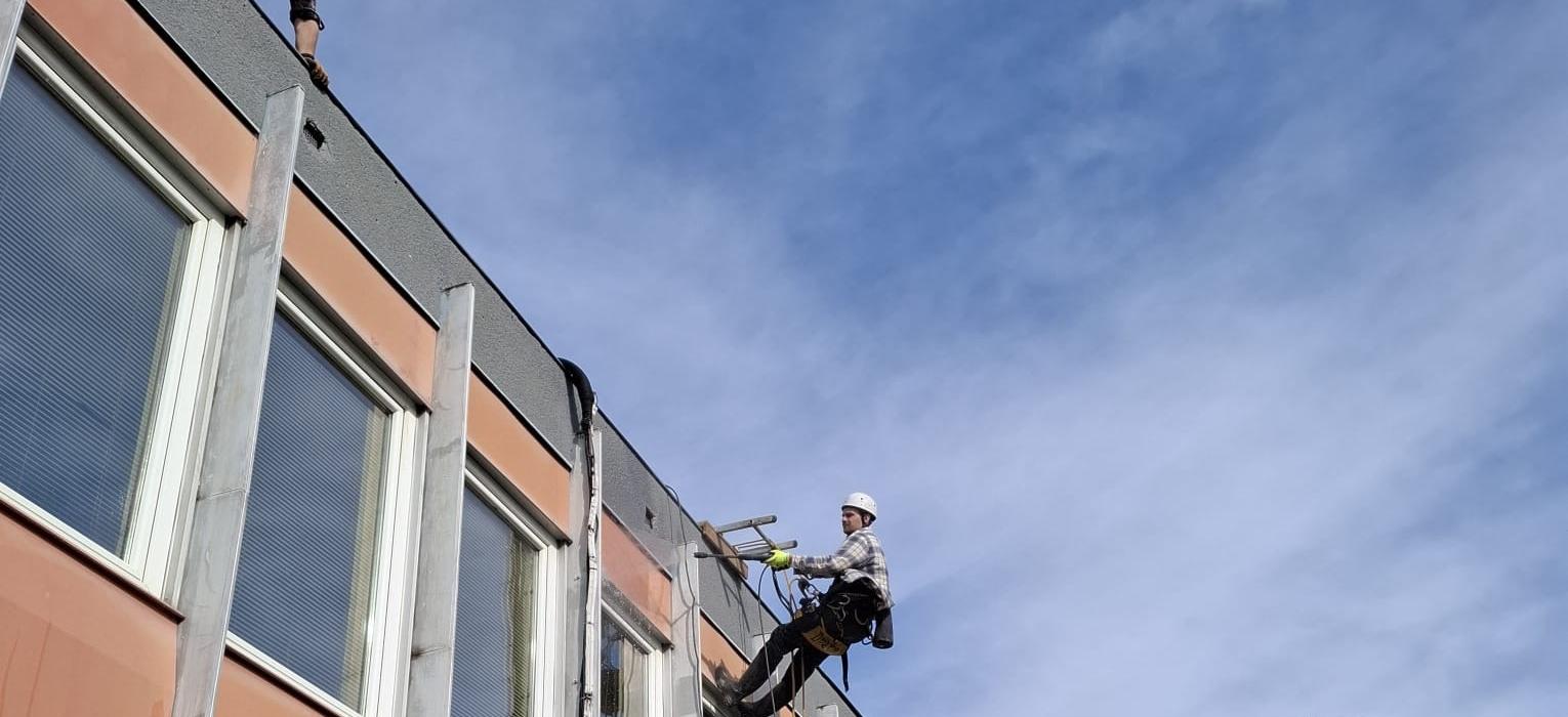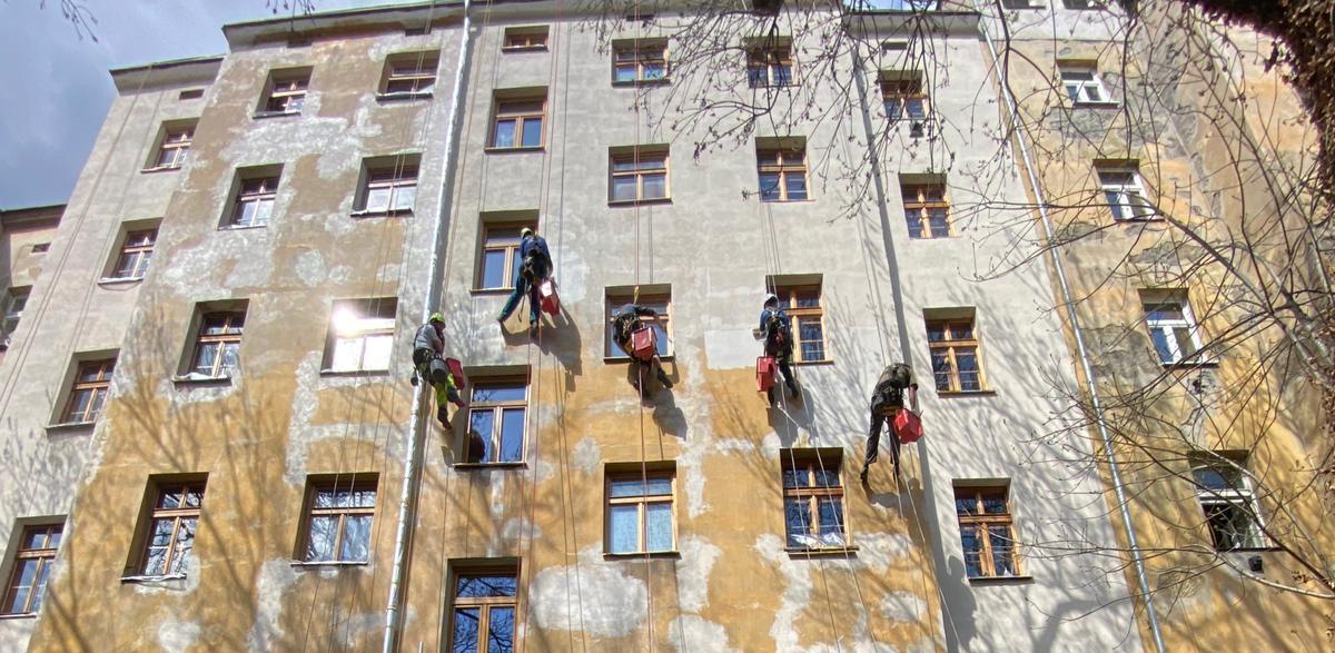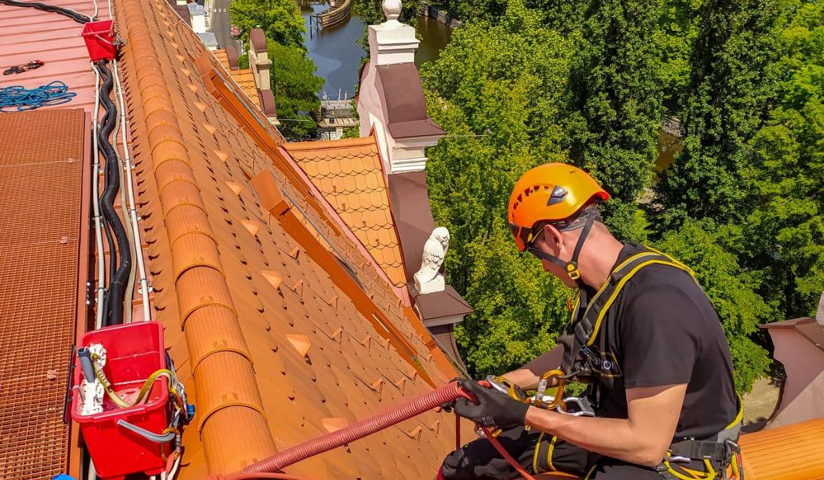 Provádíme certifikované práce ve výškách a nad otevřenou hloubkou za pomoci profesionální horolezecké techniky. Práce za pomoci horolezecké techniky je podstatně méně nákladná a efektivnější než práce z lešení nebo vysokozdvižných plošin. Veškerá doprava materiálu i přístup probíhá z vnějšku budov za pomoci speciálního lanového vybavení.