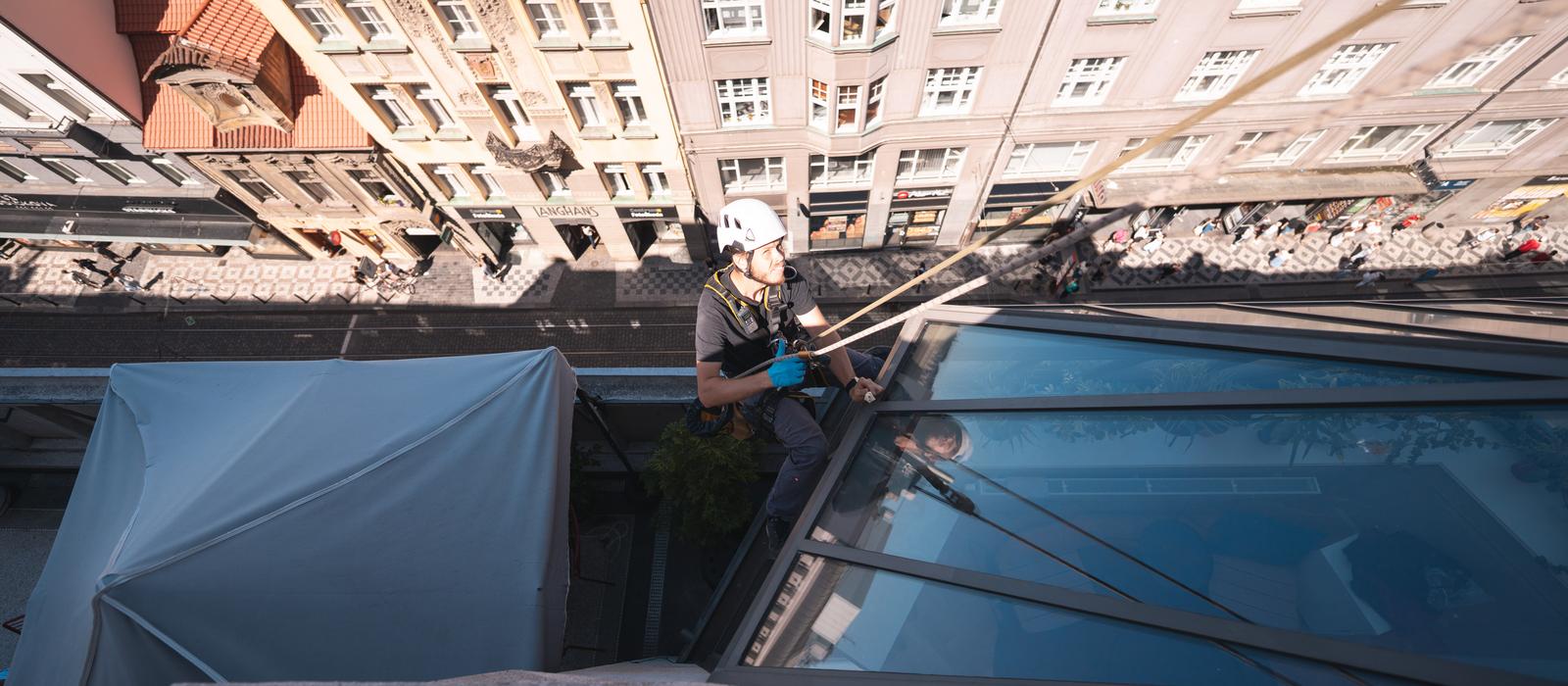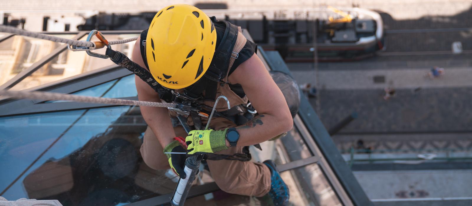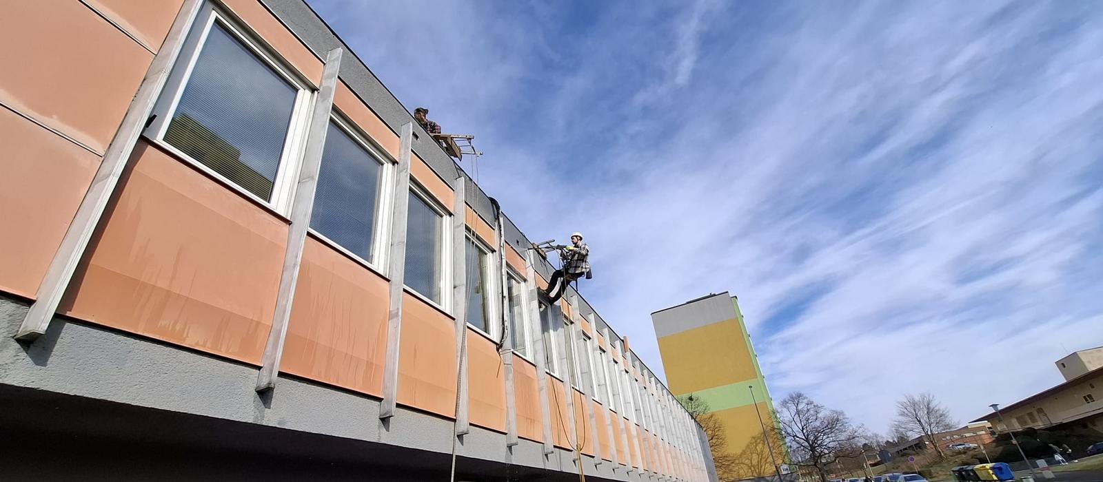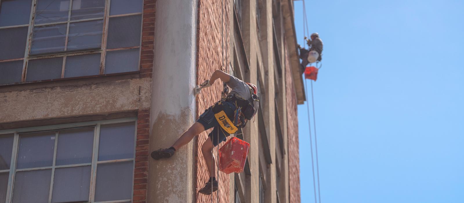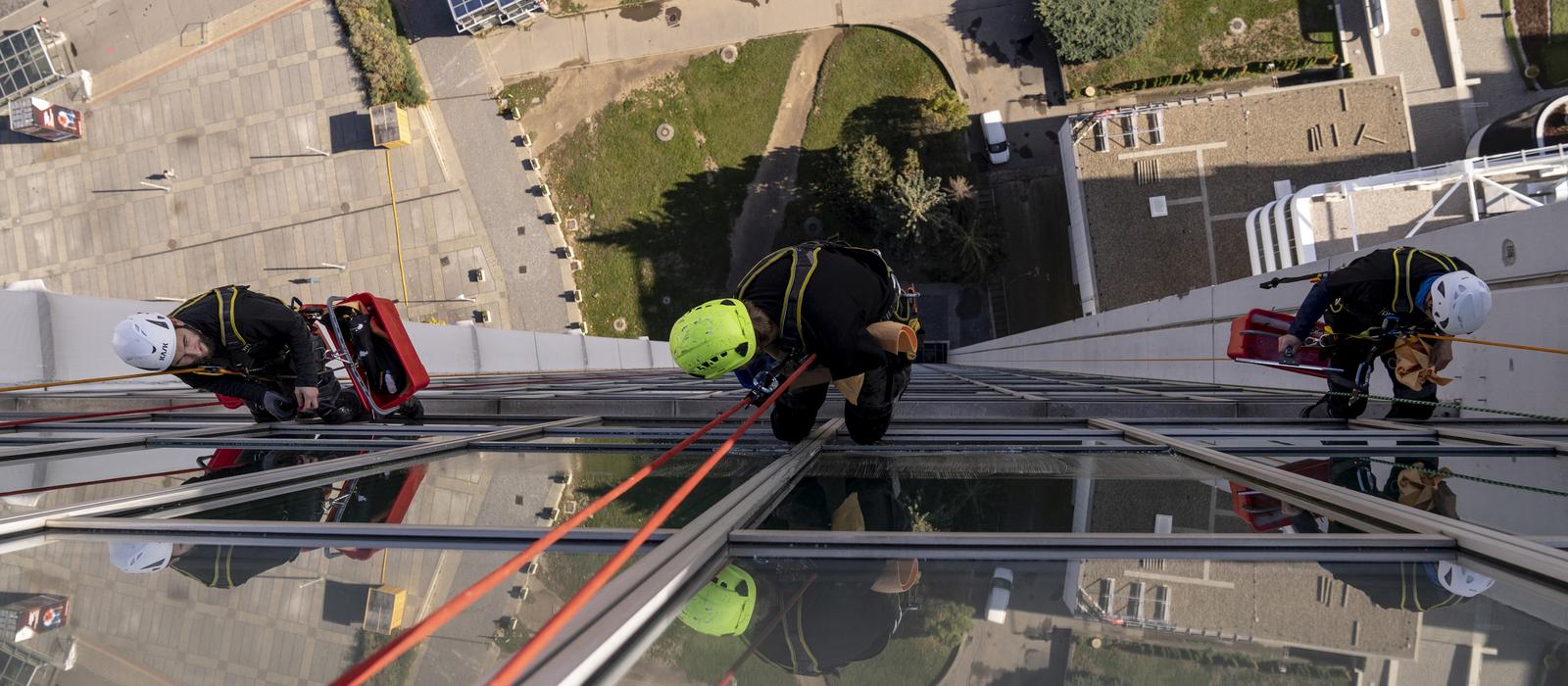Provádíme certifikované práce ve výškách a nad otevřenou hloubkou za pomoci profesionální horolezecké techniky. Práce za pomoci horolezecké techniky je podstatně méně nákladná a efektivnější než práce z lešení nebo vysokozdvižných plošin. Veškerá doprava materiálu i přístup probíhá z vnějšku budov za pomoci speciálního lanového vybavení.