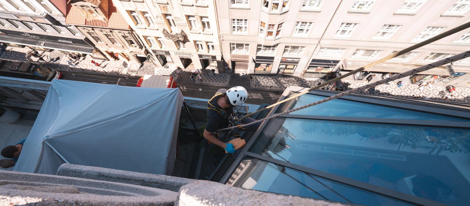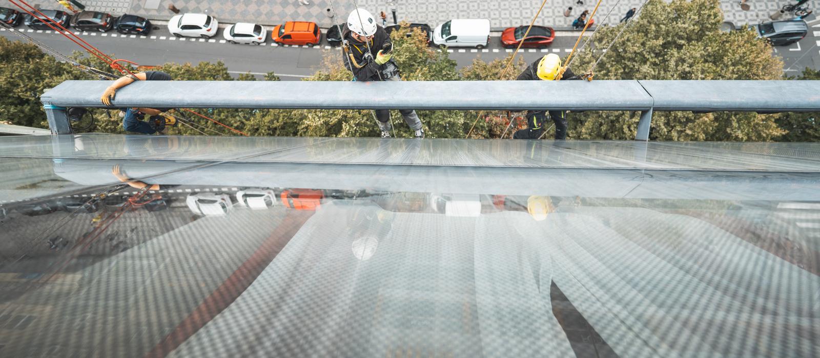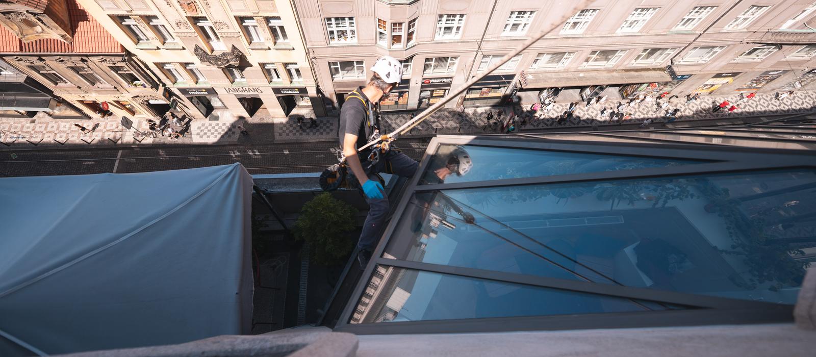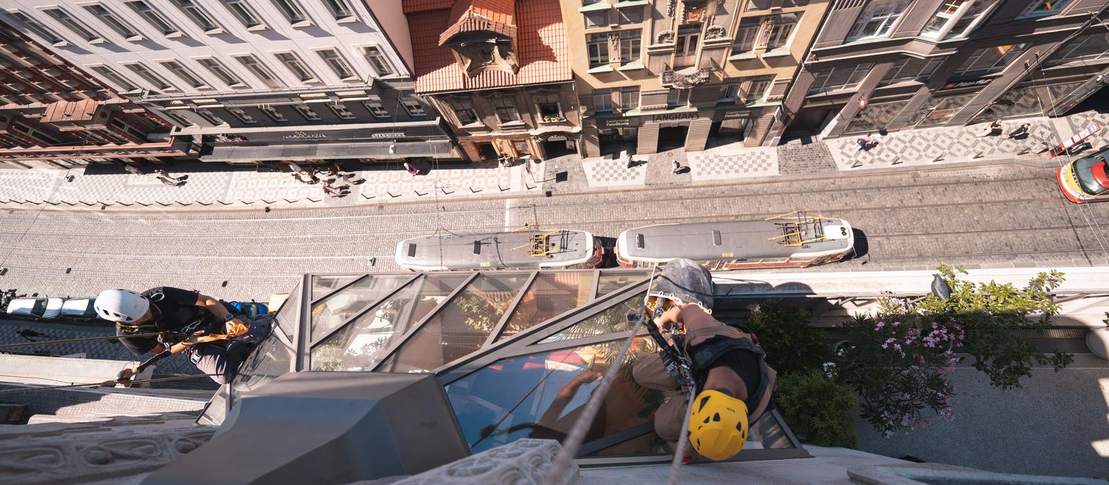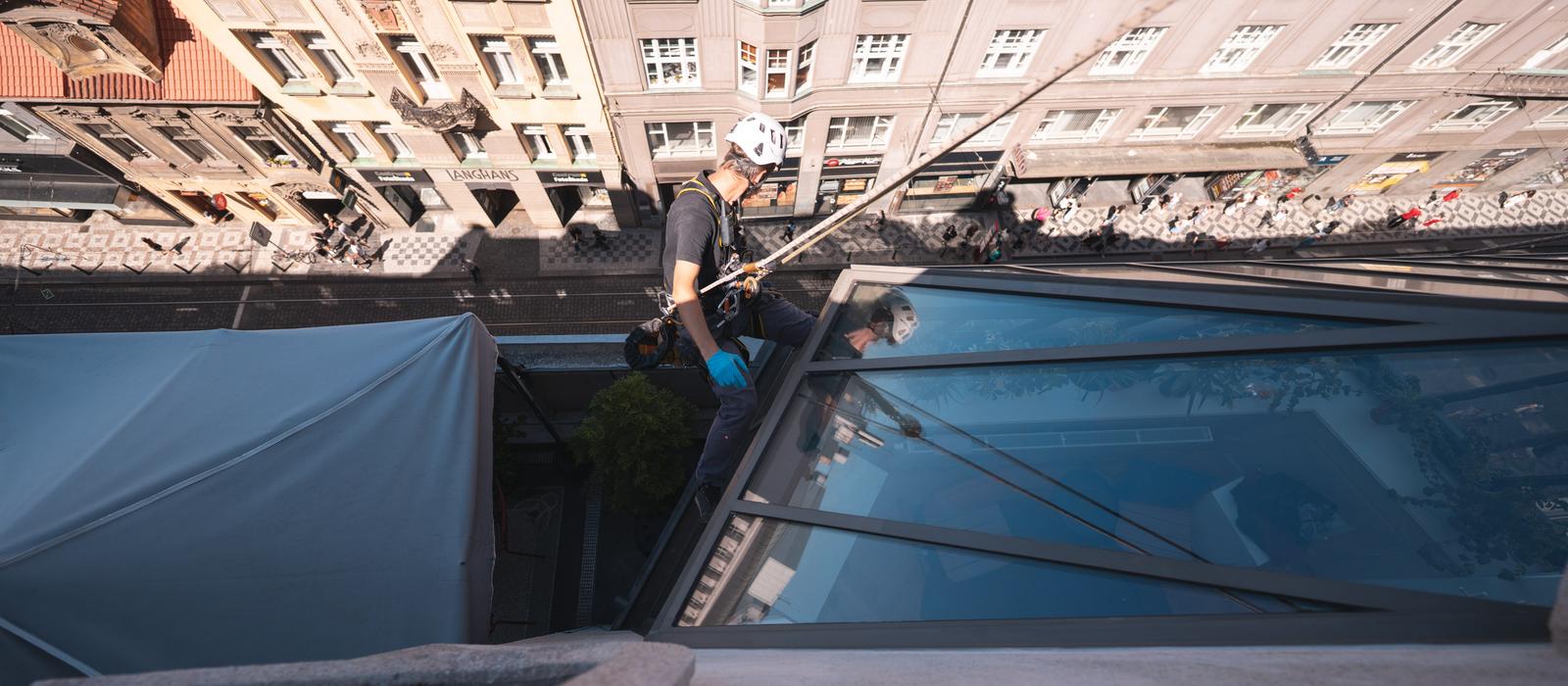 Provádíme certifikované práce ve výškách a nad otevřenou hloubkou za pomoci profesionální horolezecké techniky. Práce za pomoci horolezecké techniky je podstatně méně nákladná a efektivnější než práce z lešení nebo vysokozdvižných plošin. Veškerá doprava materiálu i přístup probíhá z vnějšku budov za pomoci speciálního lanového vybavení.